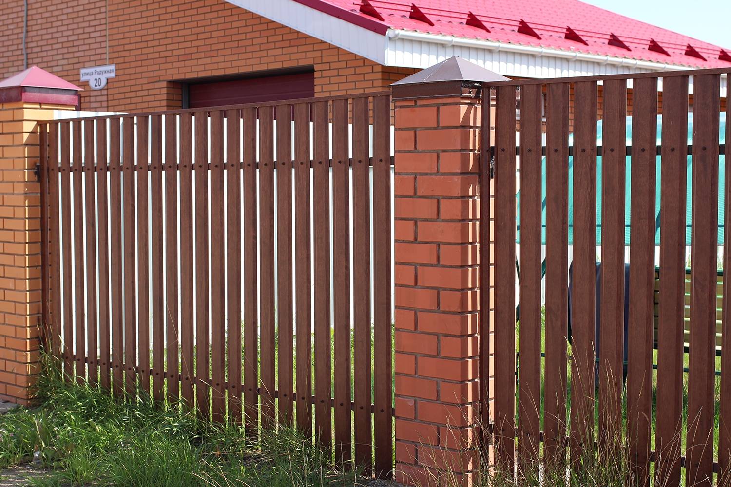 Заборы и ограждения из евроштакетника с кирпичными столбами 8 соток в Твери