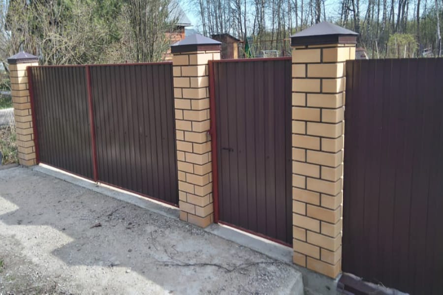 Заборы и ограждения из профнастила с кирпичными столбами 300 метров в Твери